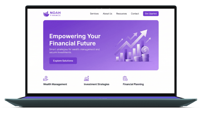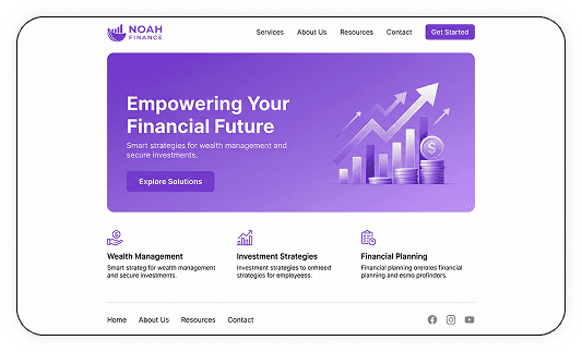 Developed the entire brand identity for Noah Finance, from the logo to the complete website, specifically tailored to their business Goals.